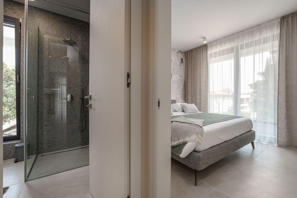 The Q Bliss is a one-bedroom apartment with an area of 69 m² located on the first floor of a new modern building, next to a forest of magnificent tall pines and oaks, whose canopies are home to birds and squirrels. This elegant and sophisticated apartment offers the perfect place for two in beautiful Rovinj.