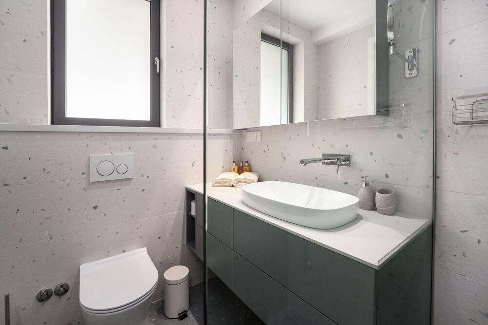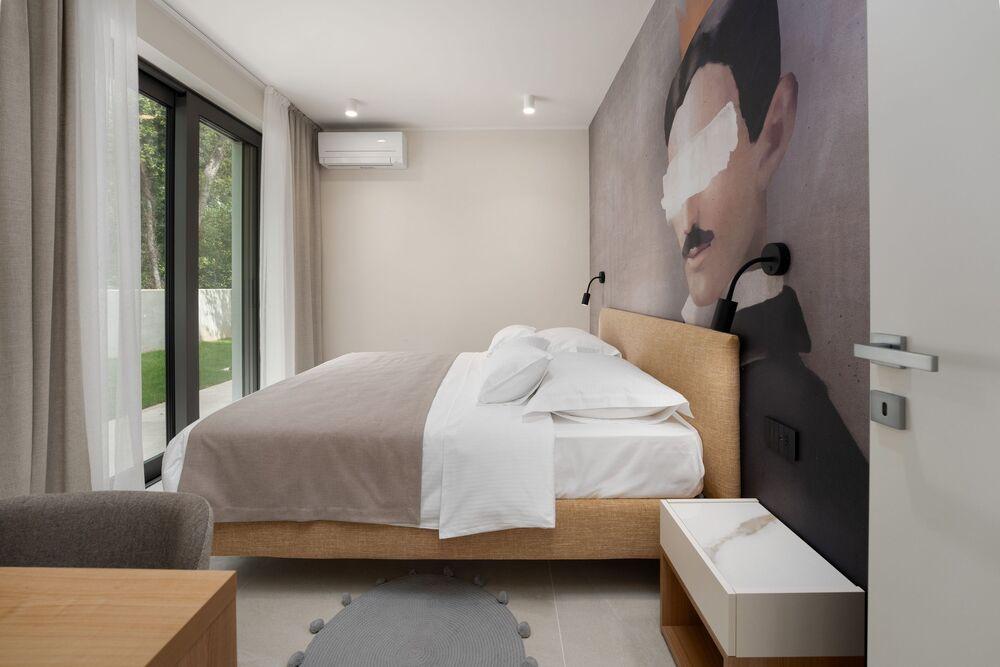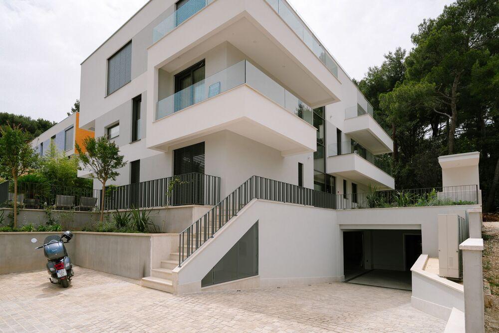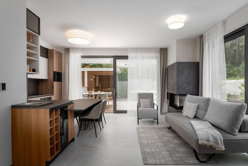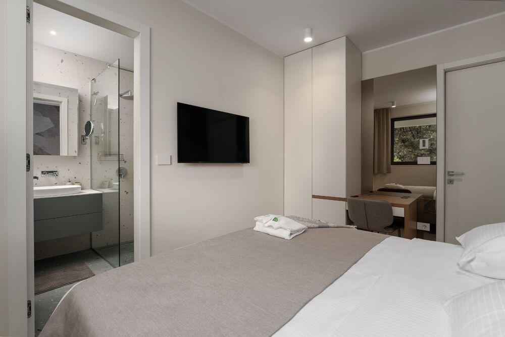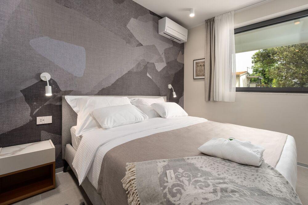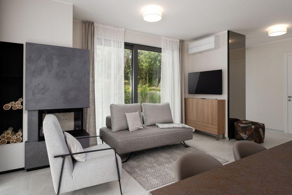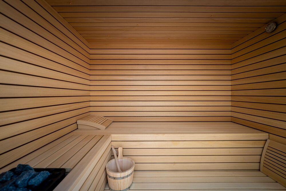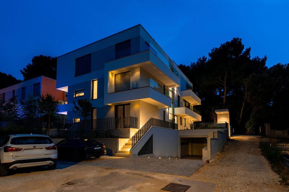 It is located on the ground floor and has an area of 105 m2. It consists of two charmingly decorated bedrooms, two bathrooms, a fully equipped kitchen with a spacious living room and a utility room. The large terrace and garden offer additional space for relaxation and socializing, with an outdoor sauna, hot tub, shower and comfortable sun loungers. Next to the terrace is a beautifully landscaped elevated garden with ambiental lighting, and the nearby forest of magnificent tall pines and oaks provides shade and the relaxing sounds of birds and crickets.